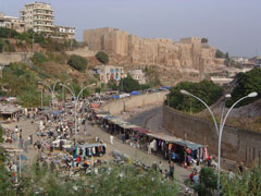 Kalenin etrafinda dolanip daha tek bir fotograf bile cekmemisken asagida insan kalabaligi gozume carpiyor. Bir pazar yeri sanki. Insanlar sehrin aksine kosusturma icindeler bu erken saatlerde.