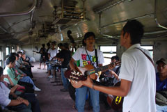 Tren perona yanastiginda solist: bir seker kutusuna topladigi paralara soyle bir gozucuyla bakti. Hasilattan memnun gozukuyordu. Once gitaristler, sonra davul, klavye, keman ve en son da viyolonsel cikti. Cikarken ucu kapiya carpti. Hicbir sey olmamis gibi bir sonraki kompartimanda sahne almak uzere hizli adimlarla uzaklastilar.